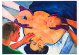 “I paint emotionally evocative moments in my life from memory. Some of these memories revolve around raising two daughters who struggle with anxiety and depression, and some relate to being raised by a mother with anxiety and depression. But other memories show joy, frustration, resentment, grief, and the full gamut of family dynamics. In other words, by showing my life, I am simply showing emotions and experiences that are common to everyone. “