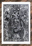 Dennis McNett was born in 1972 and grew up in Virginia Beach, VA. He moved to New York in 2001. He has been carving surly block prints for over 18 years. His encouragement as a kid came from his blind grandfather, who told him over and over again that his drawings were good. Later influences came from the raw high-energy imagery pouring out of the early 80's skateboard and punk rock scene.