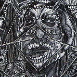His graphic aesthetic and love for narrative work has been translated in many ways. His work ranges from larger than life Viking ship performances and parades in Philly, resurrecting Nordic giants on West Broadway in Manhattan, Dragon slayings in Oklahoma, masks, installations and sculptures to unique hand-carved wood cut pieces, traditional relief prints, and graphics.