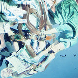 In this composition of clippings, acrylic, and glass, Yellin presents a vicious, surreal spectacle. Instead of a glorious image of transcendent spirit, humankind is caught unawares by a divine reckoning. In this mythical, livid cataclysm, volcanic elemental forces smash the organized world into disconnected pieces. The preternatural scene recalls the orgiastic, aberrant violence of Bosch, with the wickedly sunny garden recast as an ominous, roiling sea. Confronted by colossal power, human technology is helpless and material progress is drowned.