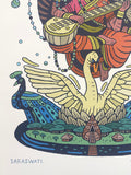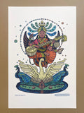 Dan Bandit aka Ghostshrimp is on a self-proclaimed mission to live his dopest dream life and inspire others to do the same. A most prolific painter and illustrator, he is the pioneering creator of the seminal “Adventure Time” Cartoon Network TV show and has produced the album artwork for countless musicians, including Flying Lotus, Brainfeeder Recordings, and rapper MF Doom’s NehruvianDoom collab albums. He also founded The Secret Society Of Ghostscouts, a visual art collective designed to support and elevate the creative careers of its members across the globe. Ghostshrimp’s illustrations take us to new worlds via psychedelic, colorful landscapes and their far out inhabitants.