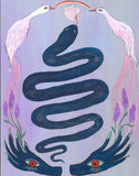 Through my practice, I explore the transcendence between dreams and waking-life in the context of magic and myth. My work often depicts utopian atmospheres filled with modern day nymphs, deities, holy beings, strange figures and creatures who reveal the the interconnectivity of animals, people and nature. I aim to create a vision of something innocent, wild, and alive. My figures are playful and contain the elements of the universe within their own structure. My work allows me to be free, to be messy and chaotic in areas, to be sharp and clean in other areas. It helps me embrace the dualities of existence.