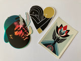 This set of three stickers features a sampling of just a few of the incredible artists that make up the Heliotrope community. These stunners were designed exclusively for us by the talents of Shepard Fairey, Michael Reeder, and Scott Erickson. Printed by Boxcar Stickers, they are tiny masterpieces in your pocket! Perfect adds to your sticker collection and support our work in Haiti and Braddock, PA.