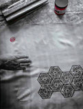 Thus, we are bringing back this special collaboration from a few years ago. Heliotrope and Zarif Design created this collection of beautiful scarves. These soft, fluttering silk twill scarves were handwoven and dyed in Kabul, then brought to our Brooklyn studio where they were screenprinted with our geometric logo motif designed by Swoon. We dug into our archive and found a small stock of these and are available in 3 colors while supplies last. All proceeds will be donated to Afghan artisans in Kabul to help them support their families.